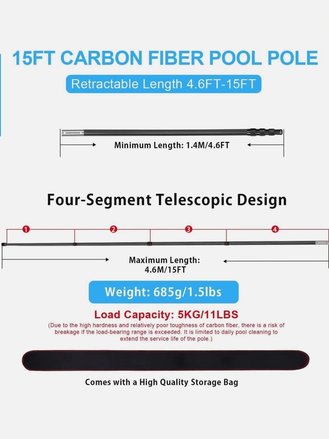 Durable carbon fiber poles light weight and long life that provide crystal clear pools.